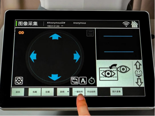 “咔嚓”一声轻响,社康操作人员按下“一键采集”键,十秒即完成双眼的眼底自动拍摄成像。眼底影像数据实时上传到深圳市眼科医院(南方医科大学深圳眼科医学中心)的华南眼科智能诊疗数据中心,数十秒即获得精准量化分析与AI诊断结果,同步发送至社康工作人员和患者手机终端。